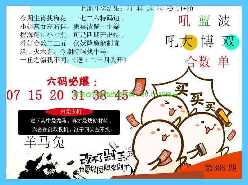 308期:肉菜草肖(吃菜吃肉)开:兔39错